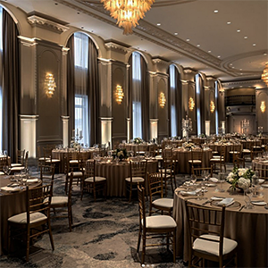 om culinary creations and full bar service are provided by the hotel’s acclaimed in-house catering. The venue’s historic architecture and elegant interiors, including a rooftop terrace with city views, offer a stunning backdrop for any occasion. With valet parking and over 450 luxurious guest rooms on-site, the hotel expertly blends historic grandeur with modern convenience for every event.